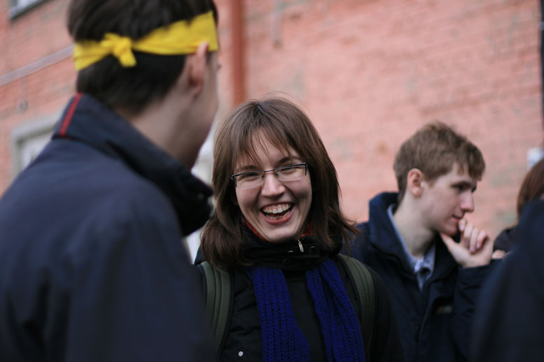В толпе студентов сразу выделялись уже одетые в костюмы "по легенде" организаторы