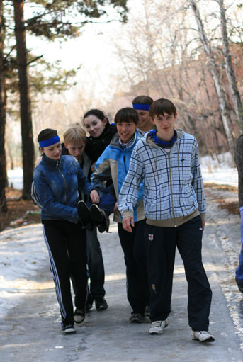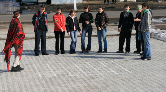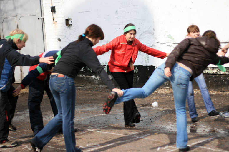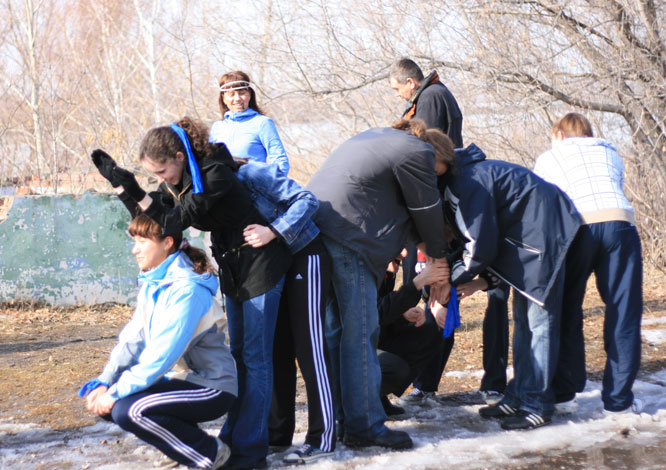 Но все это было только прелюдией к самому последнему конкурсу, где под гвалт, грохот и другие страшные звуки, посвящающиеся с завязанными глазами лазали по развалинам, стараясь не сломать руку, ногу или шею. Но выходили веселые-превеселые: