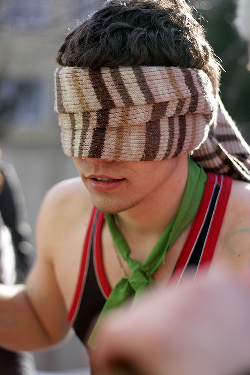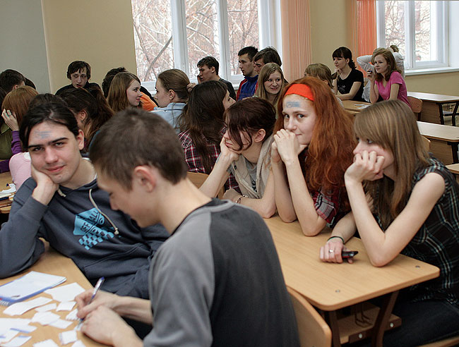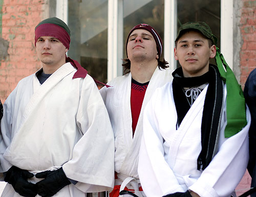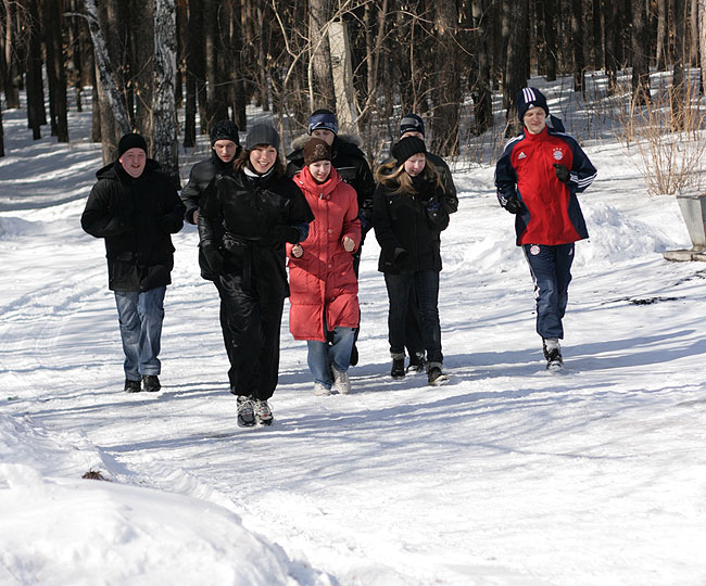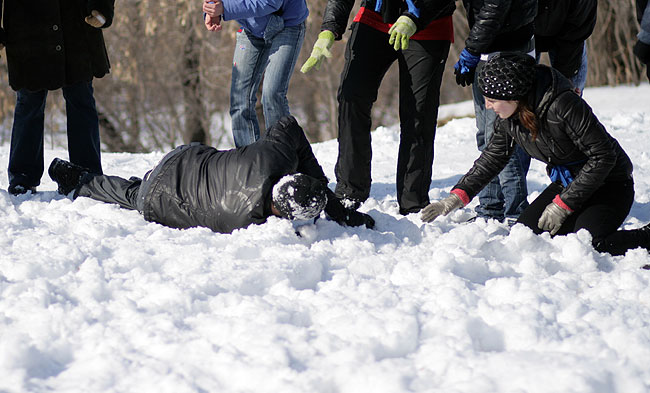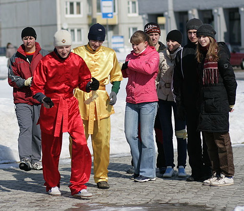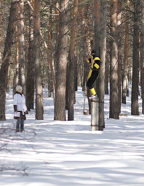 Посвящение-2010В понедельник произошло замечательное событие, один из самых главных праздников года на Матфаке: Посвящение в первокурсники!Первокурсники, предвкушая страшности и опасности, а так же старшекурсники, предвкушая интересности и веселости, погрузились в автобусы и поехали на базу отдыха АЭЛИТА (они же нам рекламу проплачивают? Если нет -- надо удалить название :), чтобы разносить по кирпичикам не родной корпус, а что-нибудь другое. Веселиться со студентами пожелали и несколько преподавателей: Любимец девушек и всех остальных -- Артем Александрович Чемеркин. Артем Александрович с классическим выражением на лице: "О, Господи! Опять эти Дни Математика!" ![]() Обаятельная и очаровательная Наталья Сергеевна Бахта ![]() На минутку заглянул и Николай Андреевич Исаченко ![]() С самого начала и до самого конца развлекала студентов как могла Елена Владимировна Каташева; а вот декан приехал только к вечеру: принять у свежеиспеченных матфаковцев торжественную клятву. ![]() Легенда мероприятия: Император Востока набирает новую армию. Для этого надо выбрать лучших из лучших новобранцев, закалить их и подготовить к армейской жизни. А вот и уже действующая императорская армия, наставники новичков. Воины кунг-фу: ![]() Бойцы дзюдо: ![]() Ниндзи-шпионы: ![]() А так же наемники из других стран. Волшебный ниндзя-скорпион из страны восходящего Мортал Комбат: ![]() Араб: ![]() Индус: ![]() И коза: ![]() Студенты сначала ехали в автобусах; потом заселялись в номера; потом обедали -- а напряжение от ожидания все росло. Тем временем, оргкомитет обсуждал все возникающие нюансы, оговаривал окончательные планы. ![]() И вот, наконец, посвящение началось! Конечно, бойцы армии императора, пользуясь служебным положением, сразу полезли обниматься с симпатичными девушками. :) ![]() Причем, чтобы переобнимать как можно больше девушек, периодически менялись: ![]() А кто-то просто обнимался с двумя девушками сразу. ![]() Издевательства над первокурсниками начались. Бойцы отряда Солнце должны были ходить солнечной походкой: ![]() Бойцы отряда Луна изучали боевой клич самураев: ![]() Бойцы персикового дерева почему-то занимались синхронным плаваньем на льду. ![]() Бойцы отряда Земля пробежали за посвящение в общей сложности 42 километра и приблизительно 195 метров. ![]() Многие испытания для своих бойцов приготовили ведущие их отрядов. ![]() Но большинство испытаний все-таки им были приготовлены на станциях. Станции были самые различные. Ниндзя-скорпион со своей очаровательной партнершей прятался в лесу, так, что и не заметишь. ![]() Но их все равно находили: ![]() На одной из станций студенты совершенно добровольно повалялись в снегу: ![]() Ну, т.е. как добровольно, выбора-то у них особо и не было. ![]() А до одного из состязаний приходилось добираться вот таким вот экстремальным способом. Радует, что юноши проявили себя джентельменами и помогли девушкам спуститься. ![]() А иногда на первокурсников оценивающе взирали сенсеи: ![]() Жизнь первокурсников показалась бы им слишком беззаботной, если бы не Летучий отряд: отступники, бывшие супер-войны императорской армии, они всячески задерживали отряды. ![]() Вот одна из самых несложных затей: Опытные самураи проводят чайную церемонию и обсуждают дальнейшее планирование своих дейтсвий прямо на спинах салаг: ![]() В общем и в целом, перваки только гордятся выпавшей на их долю чес