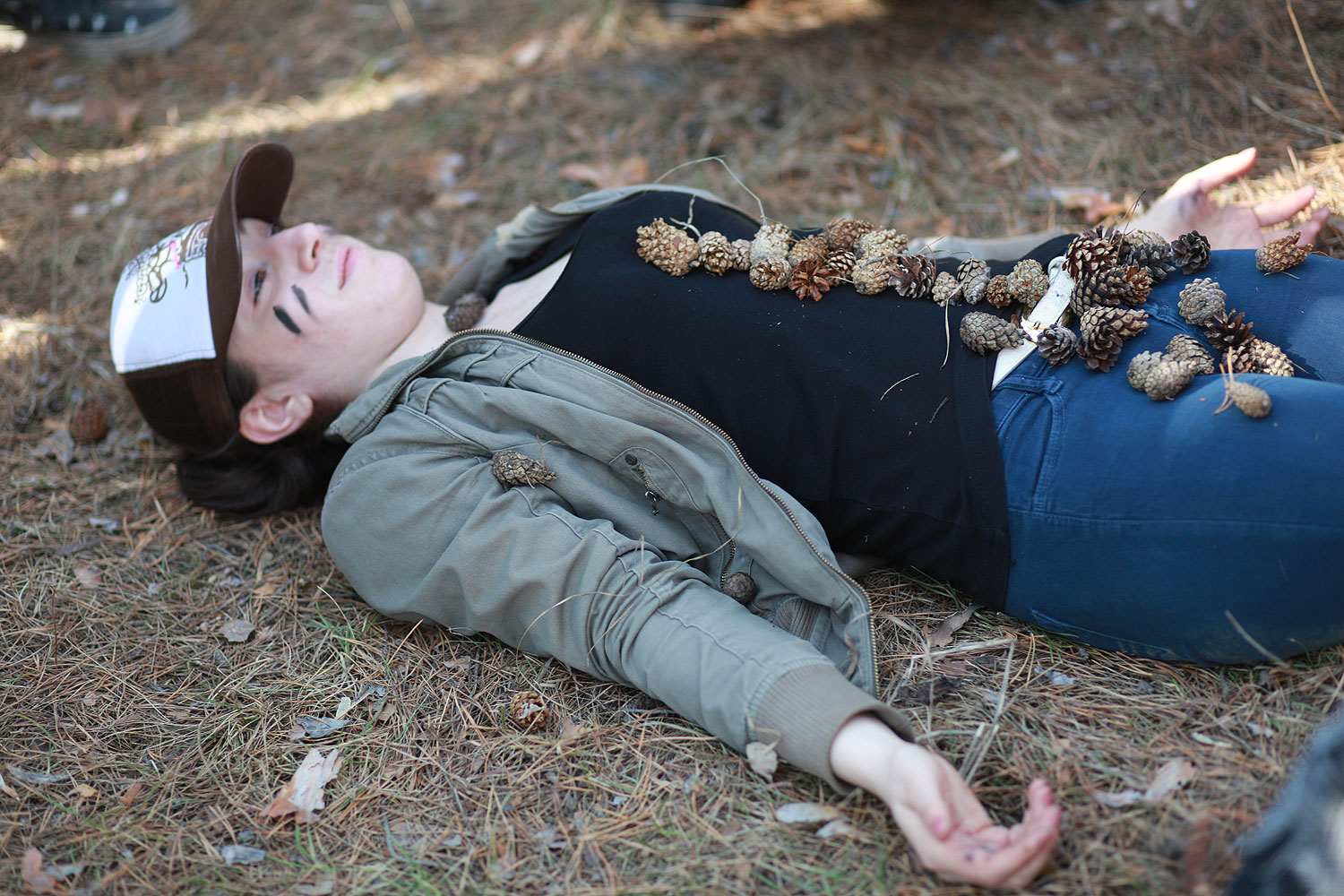 95.Девочки изображают космонавтов. И учат первокурсников в случае Конца Света спасаться с Земли на ракетах.