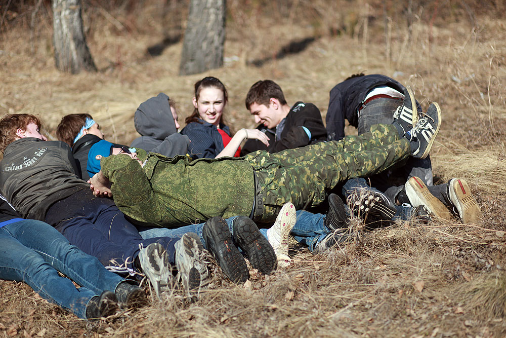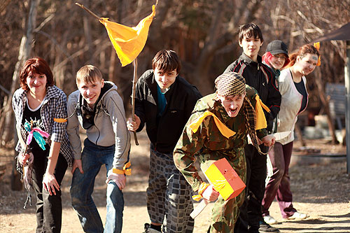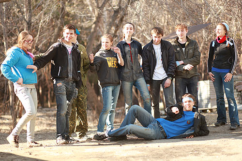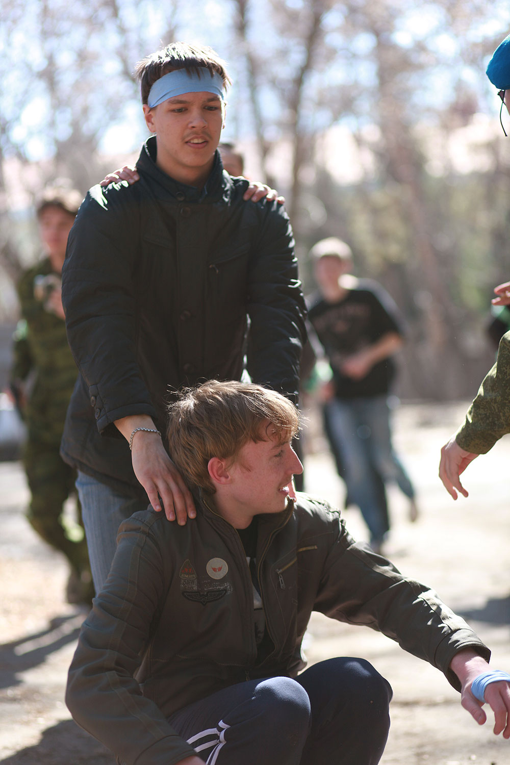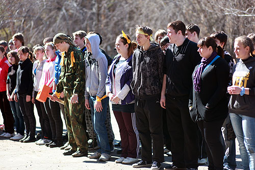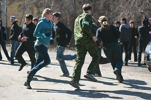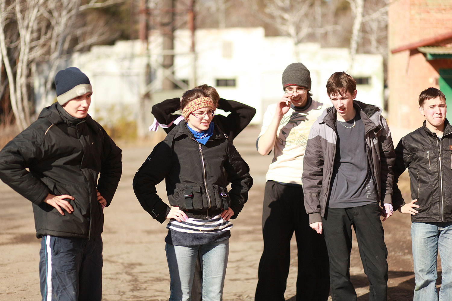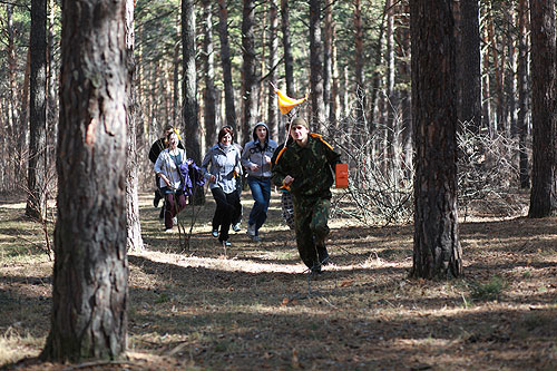 111.Построение перед посвящением для произнесения вводной. Вводную как всегда дает Николай Андреевич Исаченко. На этот раз вводная такая: "Древние предсказали, что конец света будет в 2012 году. Но мы не знаем, какой именно конец света нас ожидает. Поэтому правительство Земли (не много, не мало!) собрало вас здесь и вас будут готовить, как спасать мир в случае разных проишествий. Ну, а в конце вас ждет решающая тренировка Армагеддона. Кто выживет, может считать себя посвященным.".