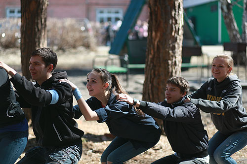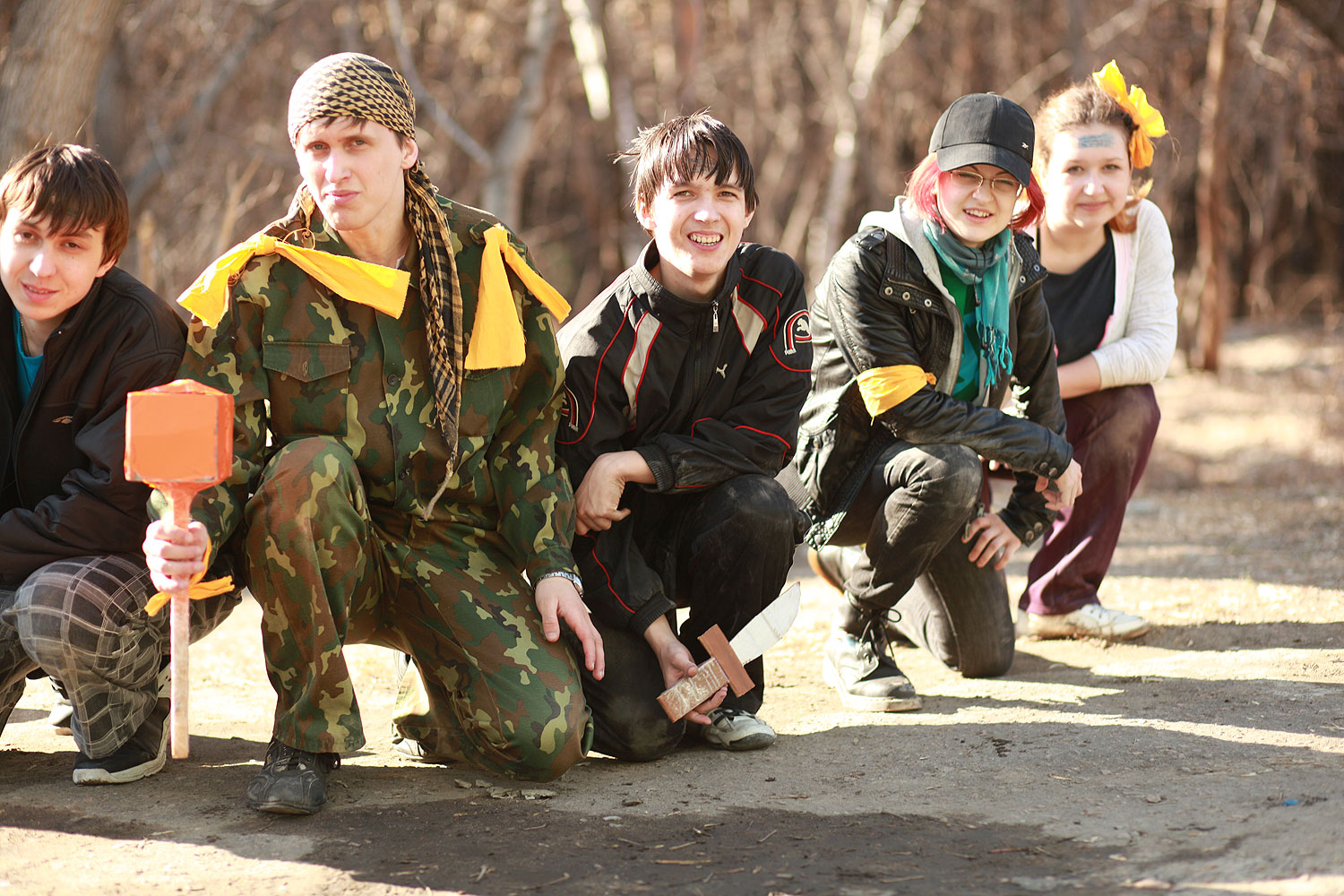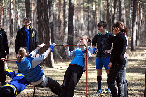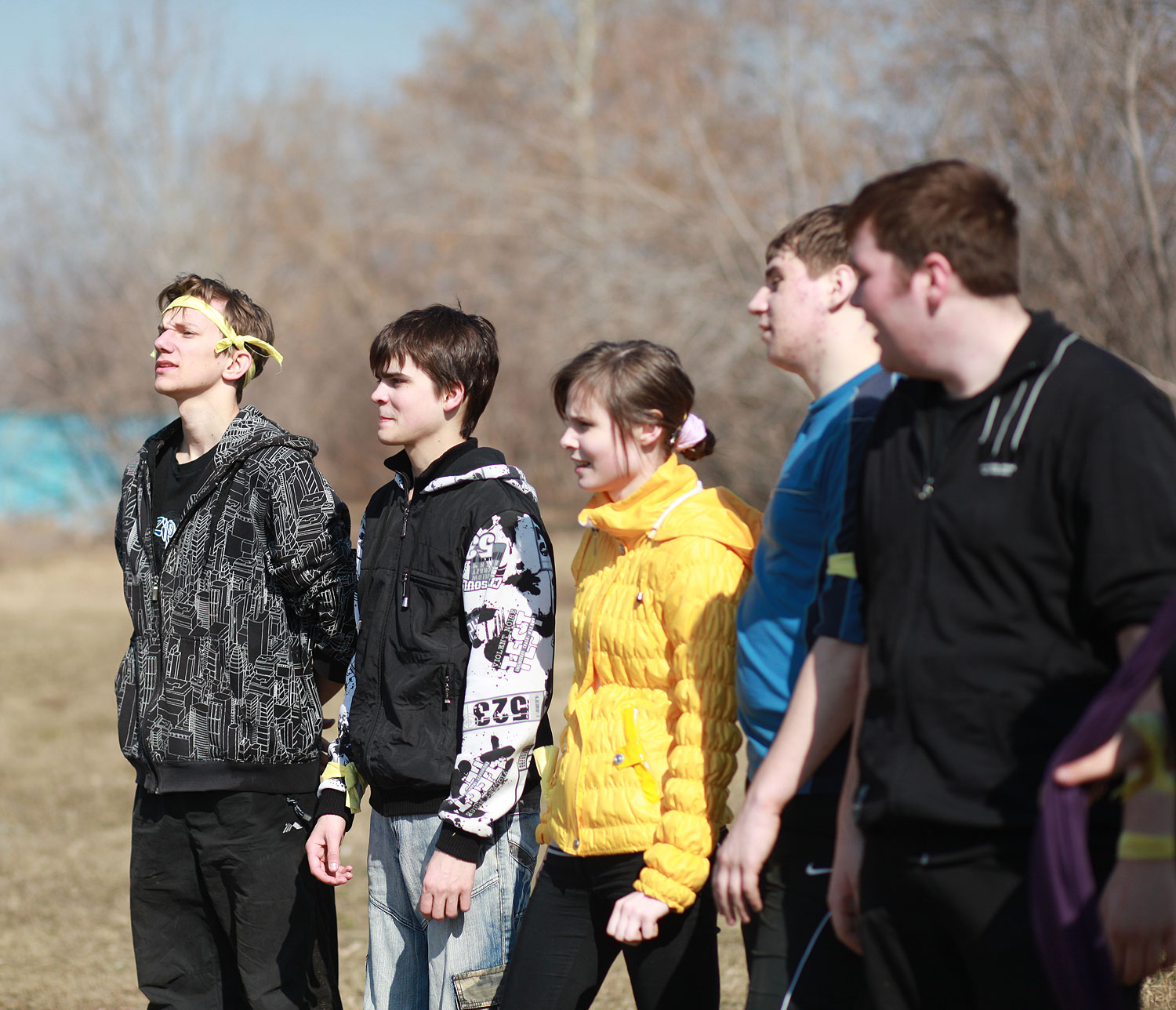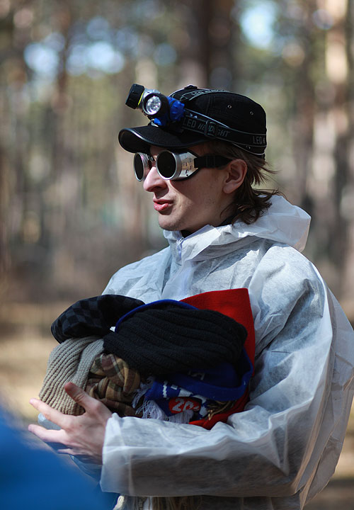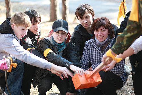 111.Построение перед посвящением для произнесения вводной. Вводную как всегда дает Николай Андреевич Исаченко. На этот раз вводная такая: "Древние предсказали, что конец света будет в 2012 году. Но мы не знаем, какой именно конец света нас ожидает. Поэтому правительство Земли (не много, не мало!) собрало вас здесь и вас будут готовить, как спасать мир в случае разных проишествий. Ну, а в конце вас ждет решающая тренировка Армагеддона. Кто выживет, может считать себя посвященным.".