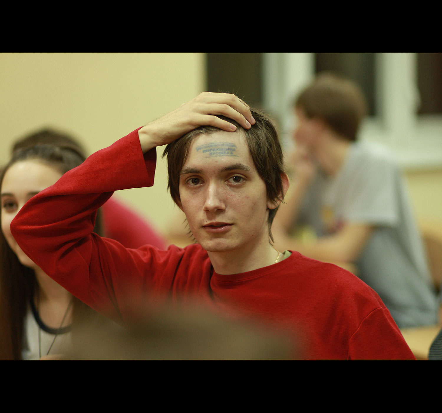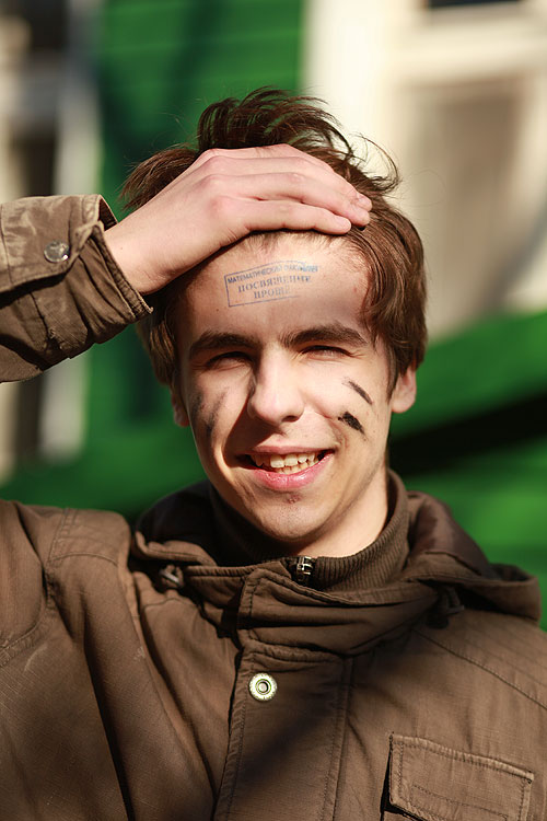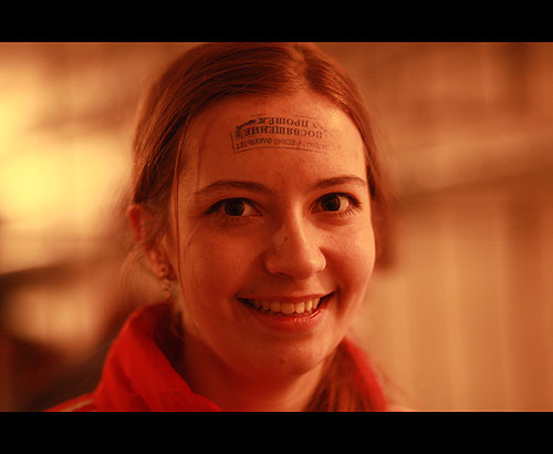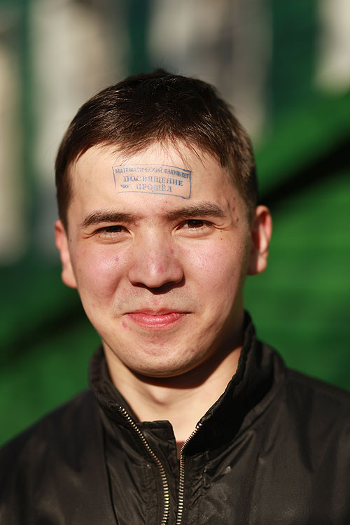 20.Кто-то уже стер печать со лба, а кто-то наоборот, гордится ею. На печати написано "Посвящение прошел"