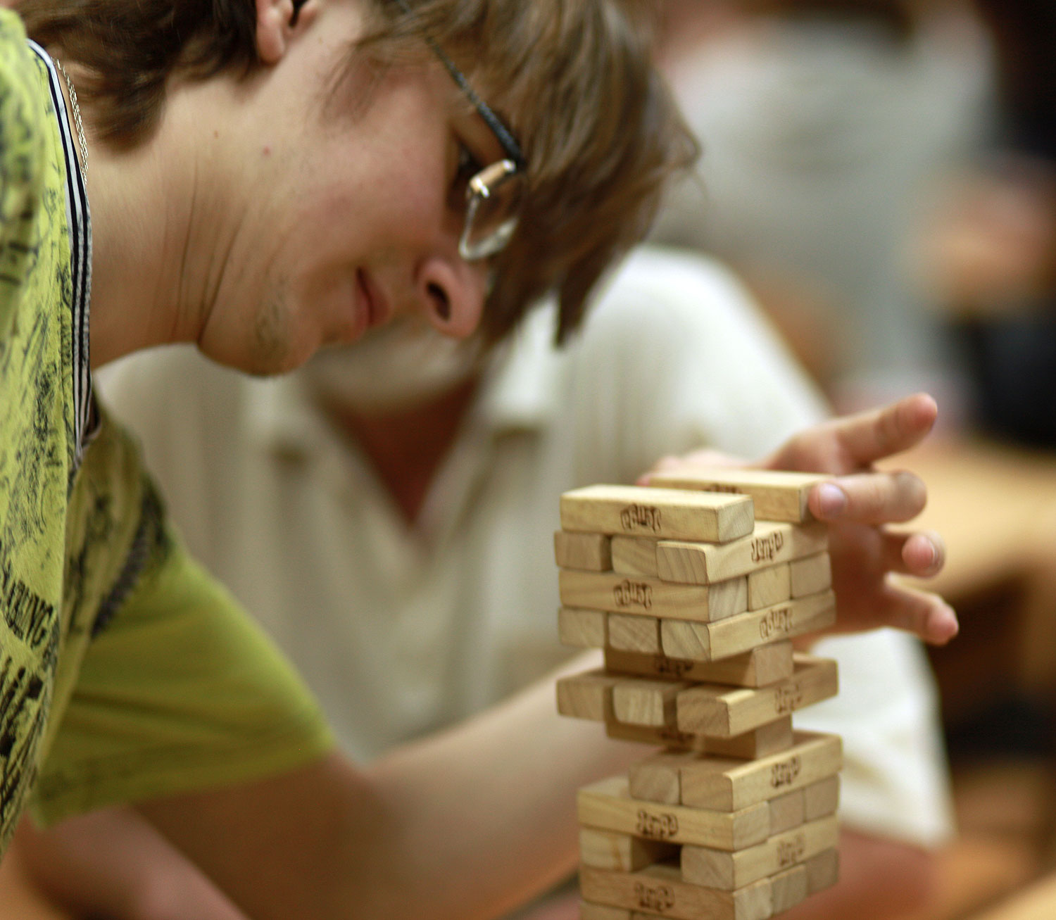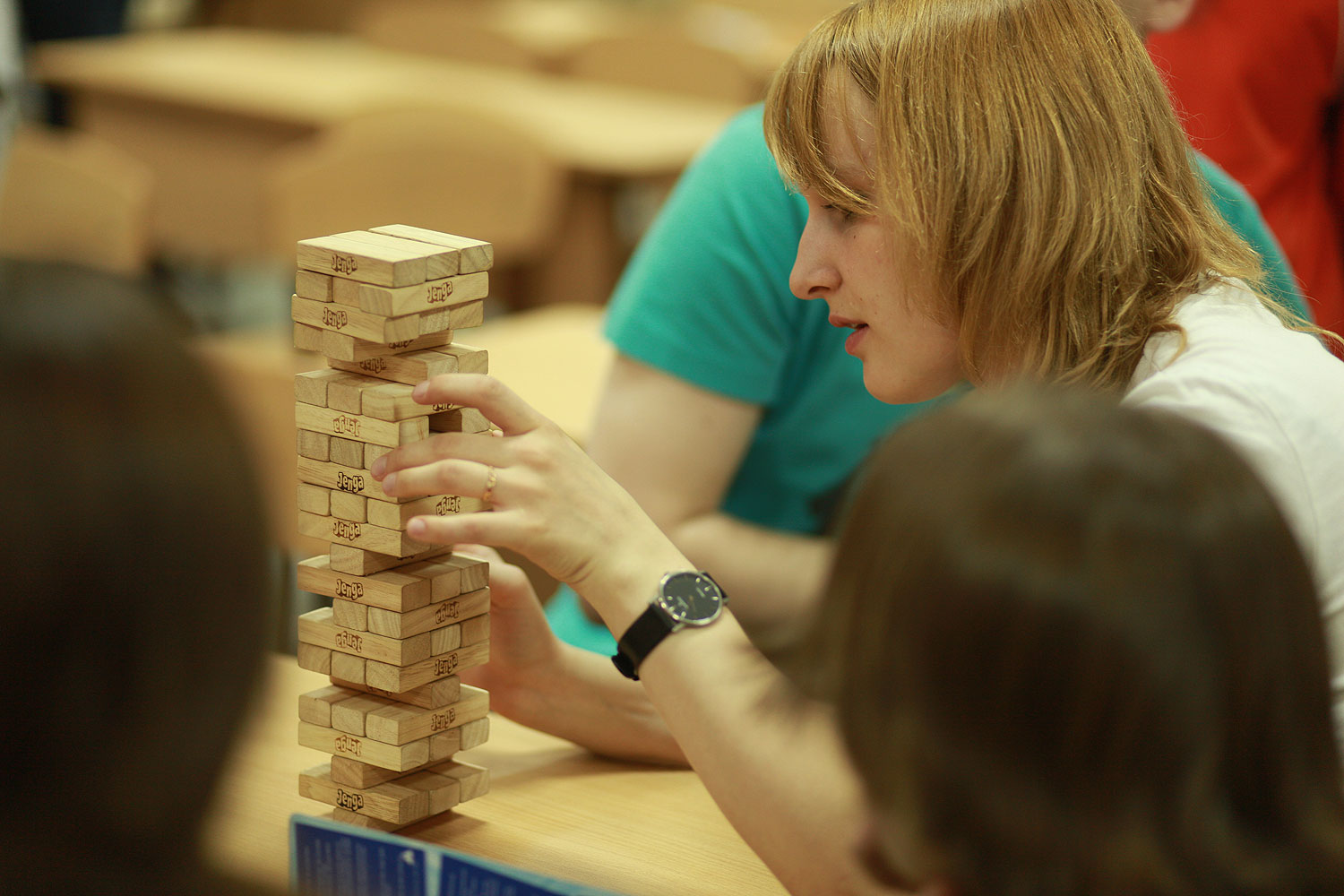 6.Несомненной популярностью пользуется игра "Jenga". Здесь надо палочки вытаскивать снизу и перекладывать наверх так, чтобы вся конструкция не рухнула.