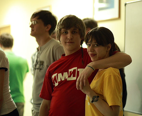 39.Последний этап посвящения проходит в полуподвальном помещении, где темно и страшно. На фотографии бессменный организатор всех Дней Математики, ныне уже аспирант Коля Шерешик (да, Коля уже не главный орг, но орг же!) и зам.декана по внеучебной работе Инна Уразова.
