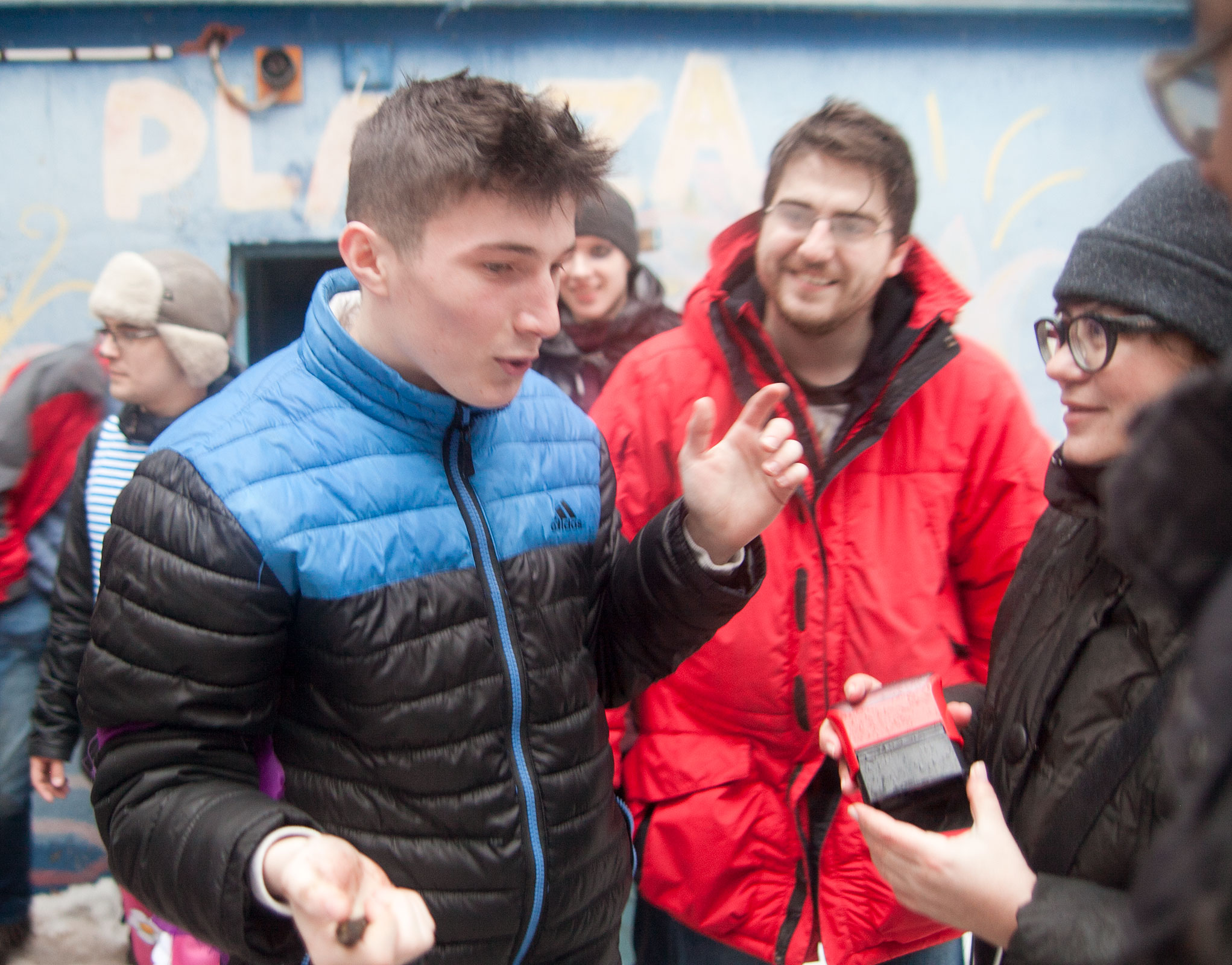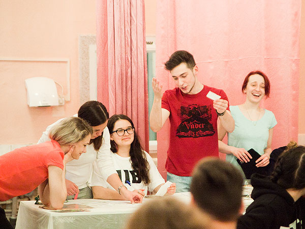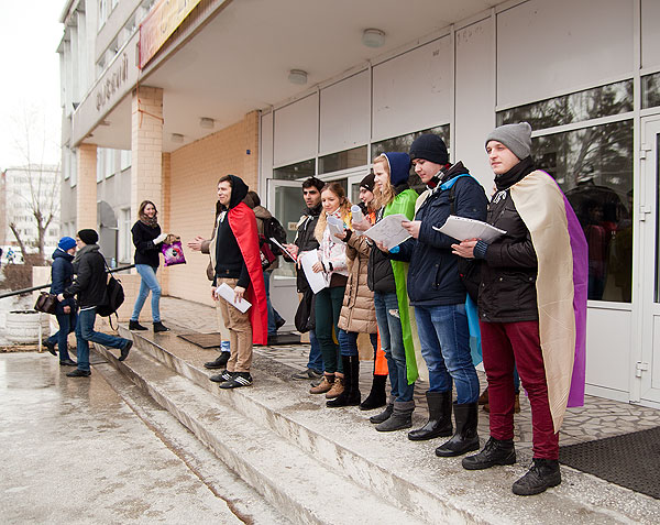 1. Ну что? Все в сборе? Тогда начинаем! "Эти люди, стоящие на крыльце нашего университета, на сутки станут вам мамами, папами и лучшими друзьями!" -- говорит Коля. И это почти правда.