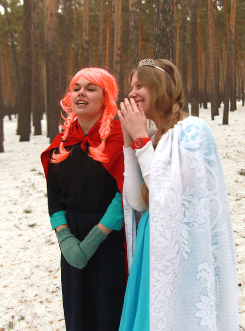97. Вообще-то, в принцесских платьях на морозе холодно. И девушки, пока нет спасателей, накидывают куртки ))))
