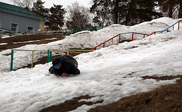 50. А иногда не бегают. Скажем, вот склон к реке. А рядом -- санки-ледянки. Ну, почему не скатиться?