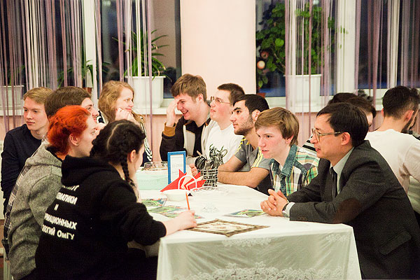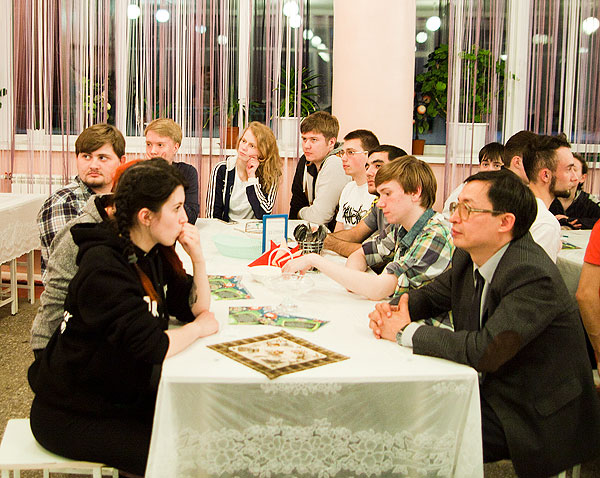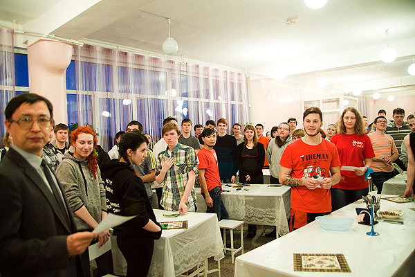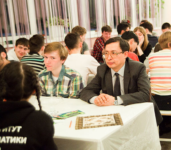 196. После ужина первокурсники собираются вместе и произносят Клятву Математика. Клятву принимает декан, Ильяс Абдульхаевич Латыпов.